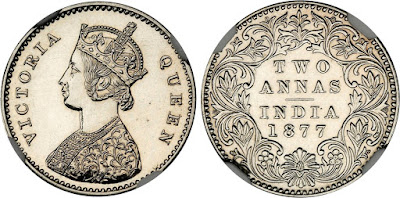 | World crowns & minors, 2 Annas Restrike, 1877. Calcutta Mint. numisbids.com |