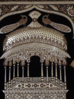 | Highly embellished peacock throne of Delhi. Internet Stones |