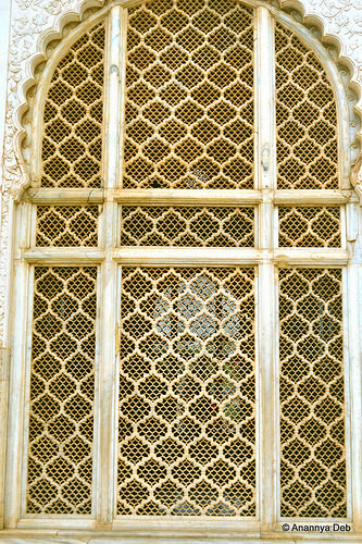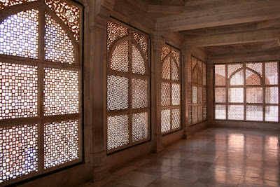 A jali or jaali, ( meaning "net") was an important element in Indian architecture of yore with Indo -Islamic influence. The word refers to a nicely perforated ornate stone or latticed screen, usually with a striking geometrical pattern. In the Islamic architecture, use of calligraphy in jali may be noticed in many places. Not only does jali increase the aesthetic value of the building but also gives impetus to the beauty of the structure. During the Mogul period, certain innovations were introduced in designing jali. They gave priority to plant-based patterns over the geometric ones that had been around for a long time. Yet another design was the addition of Petra dura inlay to the surrounds, using marble and semi-precious stones. A good example is Taj Mahal at Agra.